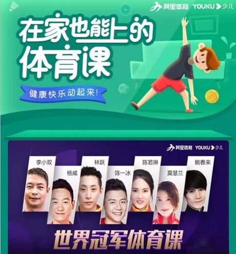 阿里体育联合优酷少儿发起“在家也能上的体育课”项目,2月初上线以来,联合国内体育科研机构、运动明星、体育培训机构等100多家合作伙伴,总课时达到1500个,直播场次接近400场,全平台共有几百万人的参与量。目前还升级了“世界冠军直播课”,持续为家长和孩子们提供运动健康服务。