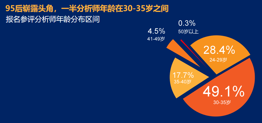 事实上,分析师年轻化趋势已经非常明显。70后、80后分析师占据主流的同时,90后、95后乃至00后分析师都已陆续登场,甚至出现少数90后首席分析师。新财富在去年底发布报告中称,95后分析师已崭露头角,2019年报名参评最佳分析师中,年龄最小的只有24岁。