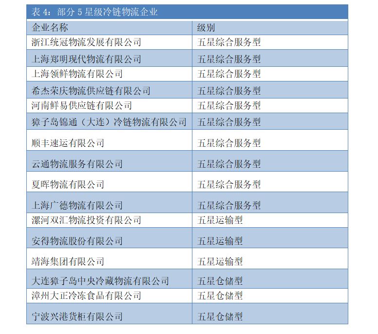 这样多层的中间链条和交易交付环节,让生鲜行业的损耗率居高不下。2018年开始,支持冷链物流业发展的国家政策不断出台,各地政府开始大力支持冷链物流发展,给予星级冷链企业资金补贴。截至2018年底,全国有约57家星级冷链企业(表4)。