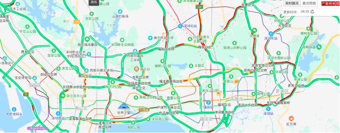 于是时报君顺手搜了一下地图实时路况,早上8点半的深圳是这样的: