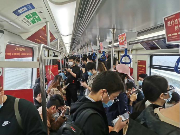 早高峰的深圳地铁4号线: