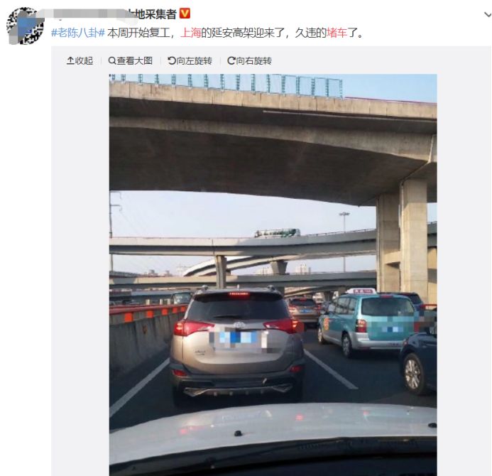 据东方网消息,记者从上海交警部门获悉,今天早高峰,上海全市道路和9处省际高速道口车辆流量比前几日有明显回升,市内交通流量已达到往常周一工作日8-9成左右。