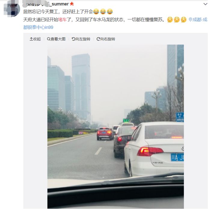 不过对于今早这熟悉的堵车,大家的反应却和以往不一样了,比如时报君某个群里的朋友表示:哈哈,终于开工啦。