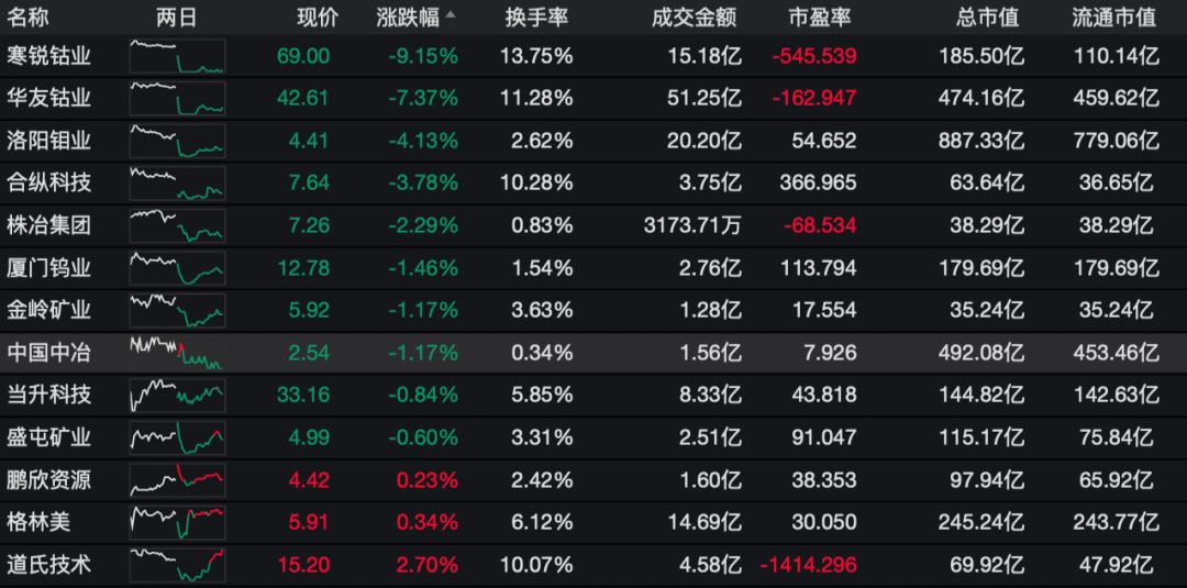开盘不久,华友钴业(603799)、寒锐钴业(300618)两只钴类龙头双双跌停,截至收盘,分别大跌7.37%、9.15%。寒锐钴业更是遭四机构席位卖出2.51亿元。同时,天齐锂业(002466)、赣锋锂业(002460)等锂矿公司大跌逾4%。