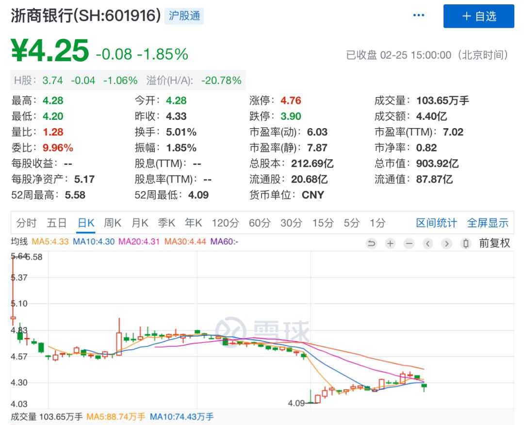 公开资料显示,浙商银行是12家股份制银行之一,于2004年8月开业,总行设在浙江杭州。2016年3月,在香港联交所挂牌上市,后于去年11月登陆上交所,成为第13家A+H上市银行。