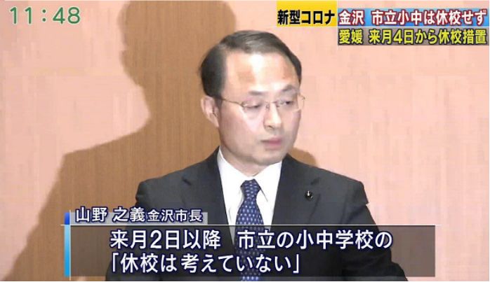 石川县金泽市市长山野之同样拒绝了安倍的停课要求,全市市立小学、初中、工业高中将继续正常开课。山野认为,没有确诊的学校,自己没道理去要求停课,家长也措手不及,企业也不好办,安倍没有留给各方讨论的时间