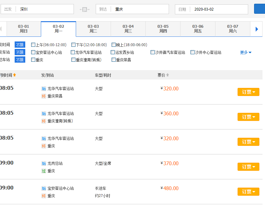 而记者在网上随意搜索了深圳去广州的大巴票,价格在70至80元附近,而深圳去往重庆的票价则在320元以上。