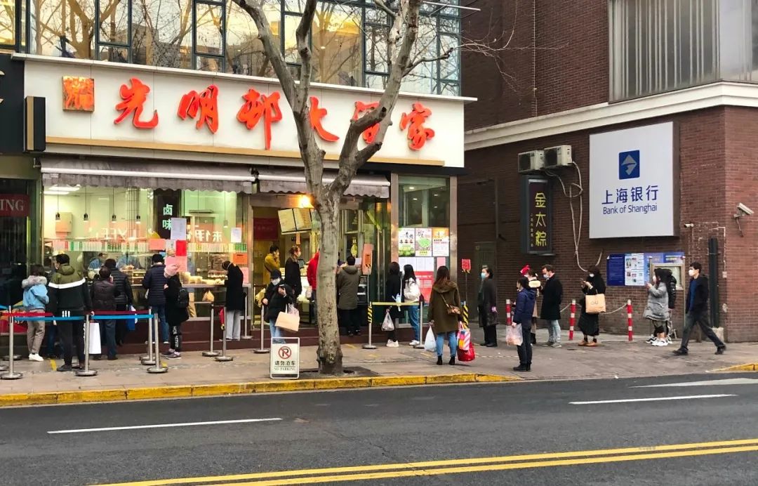 淮海路是上海最富代表性的商区之一,在这条街上,汇聚各大服装品牌门店,也不乏网红餐饮店。记者看到,老字号光明邨大酒家门口已经排上了长队。