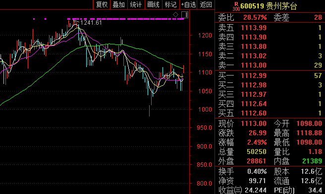 截至2020年3月3日收盘,贵州茅台股价报1113元/股,总市值为13981亿元。