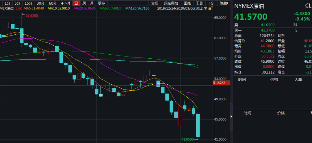 沙特阿美此次股价暴跌,也和国际原油价格密切相关。截止上周五收盘,NYMEX原油期货价格目前为41.57美元/桶,跌幅9.34%;布伦特原油期货价格跌至45.27美元/桶,跌幅9.44%,两者均创造了2017年6月以来的最低值。