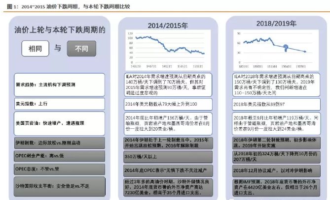 在国际油价大跌背景下,以两桶油为代表的国内石油公司难免首当其冲。机构同时也建议关注产业链中受益的下游塑料包装行业公司,大炼化行业在“铁底”验证下的机会,以及油价触底信号显现后带来的产业链投资机会。