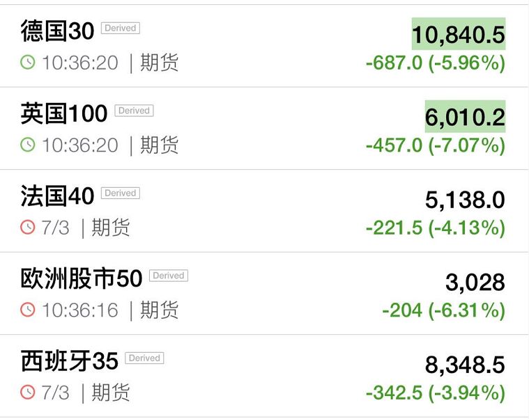 欧股、美股期货继续大跌,美股期货暴跌逾4%,盘中一度触发熔断交易。