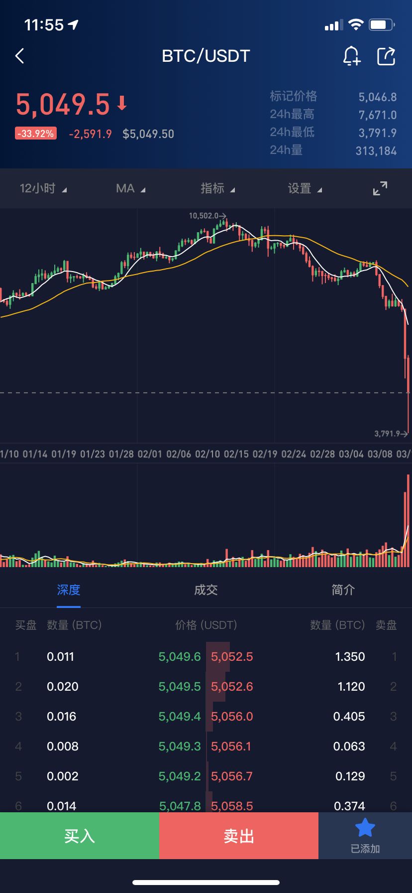 北京时间3月13日一早,比特币价格延续3月12日的暴跌趋势,上午10点16分左右达到最低点3791.9美元。截至目前,比特币24小时跌幅超36%,最大单日跌幅超50%。