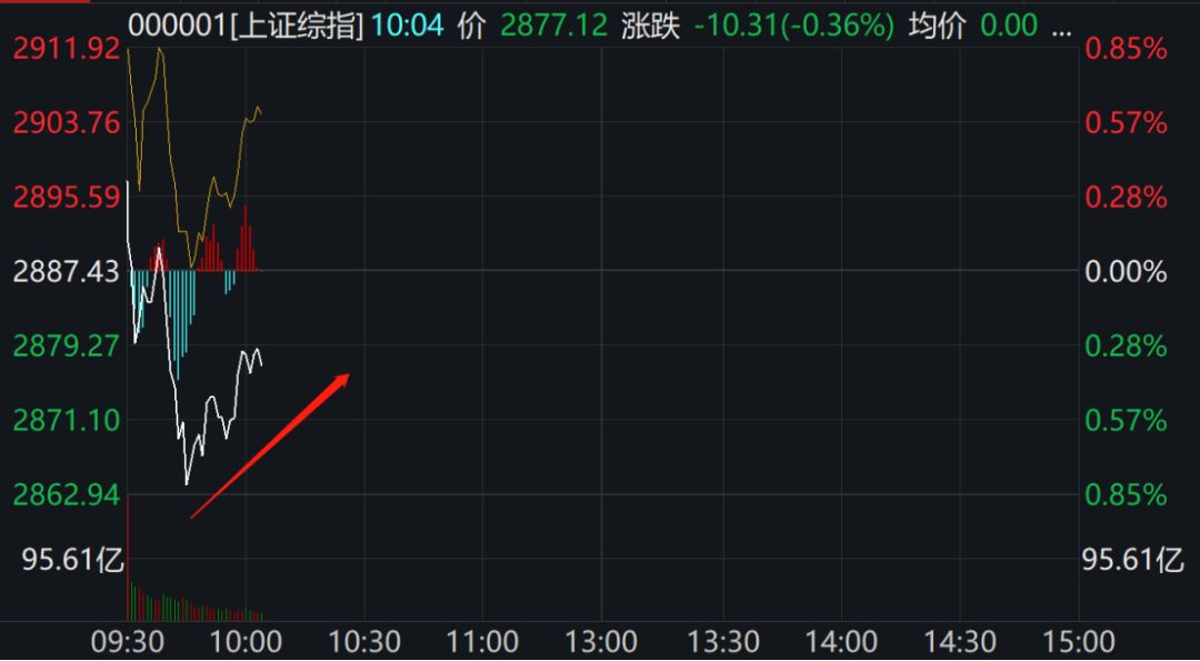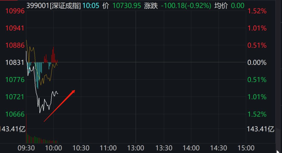 在9点46分左右,在央行发布实施定向降准及MLF操作后,三大指数再度从底部开始短暂回升。