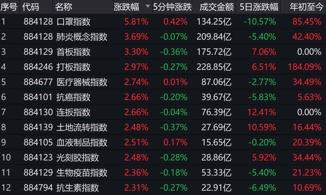 而从当天盘面上看,口罩指数、流感指数、肺炎概念等疫情相关题材板块表现活跃。