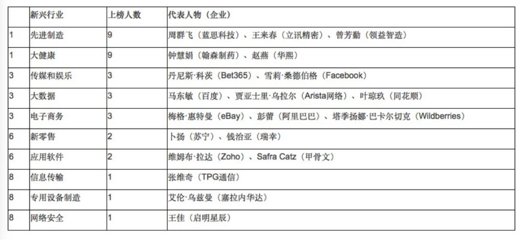 除先进制造外,大数据、电子商务、网络安全等新科技领域,也诞生了许多女富豪。