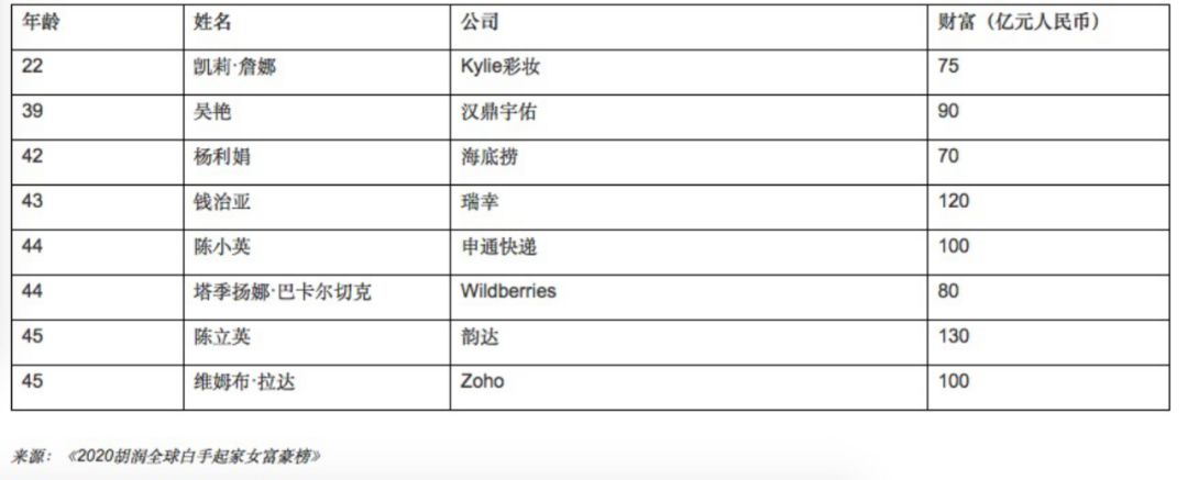 其中,最年轻的是22岁的凯莉·詹娜,其次便是汉鼎宇佑的吴艳,年龄39岁。在25岁至35岁这个年龄段,白手起家女富豪出现了明显断层。