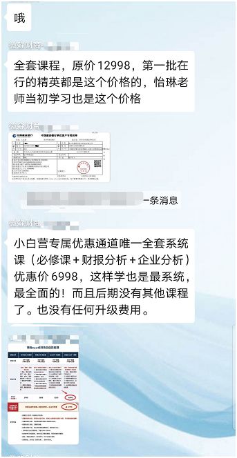 根据此前第五期学员班的一名张姓学员向记者透露,进阶版的课程原价是12998元,给到小白营学员的优惠价是6998元,“通过第一期的课程,我觉得老师讲得挺好的,有点心动,不报名的话,可能就没这个优惠价格了。”
