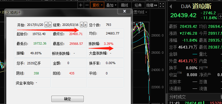 值得关注的是,特朗普于2017年1月20日开始执政,当天道琼斯指数收盘19827点,盘中道琼斯指数下探至20387点,指数点位仅比特朗普上台后高3%。如果美股继续下探,特朗普执政后最引以为傲的股市涨幅即将清零。