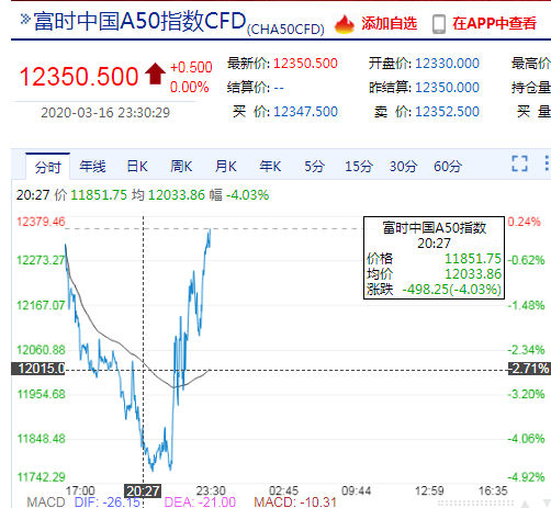 同时,富时中国A50指数从一度跌近5%,拉升至翻红。