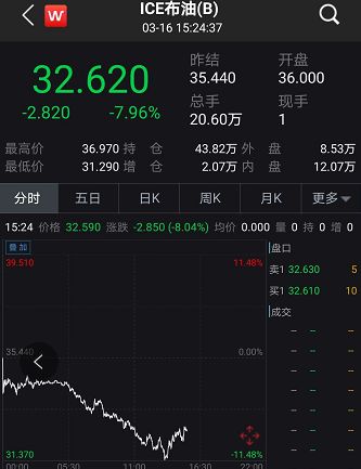 原油价格大幅跳水。布油盘中一度跌幅超10%,WTI原油跌破30美元/桶。