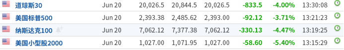 三大股指期货先后触发熔断,引来市场担忧。截至下午13点左右,纳指期货跌4.47%,道指期货跌4%,标普500指数期货跌3.71%。
