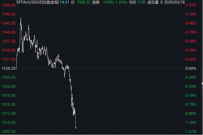 黄金跌破1510美元