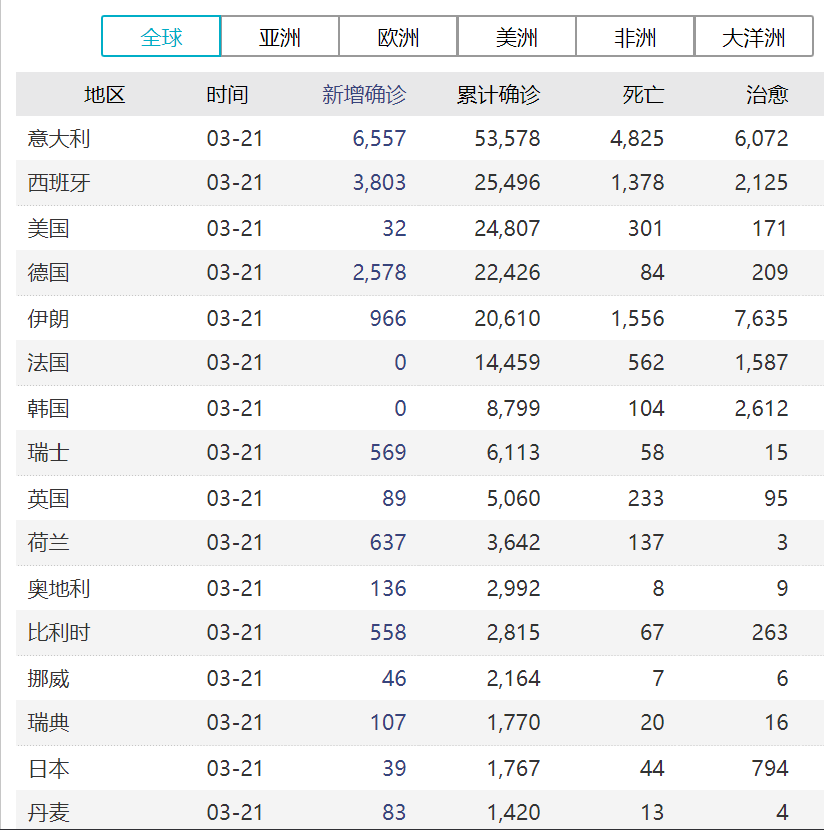 根据美国约翰斯霍普金斯大学的实时数据,截至美东时间21日下午,全球新冠肺炎确诊病例突破30万例,累计达303001例;新冠肺炎死亡病例突破1万例,累计达12762例。