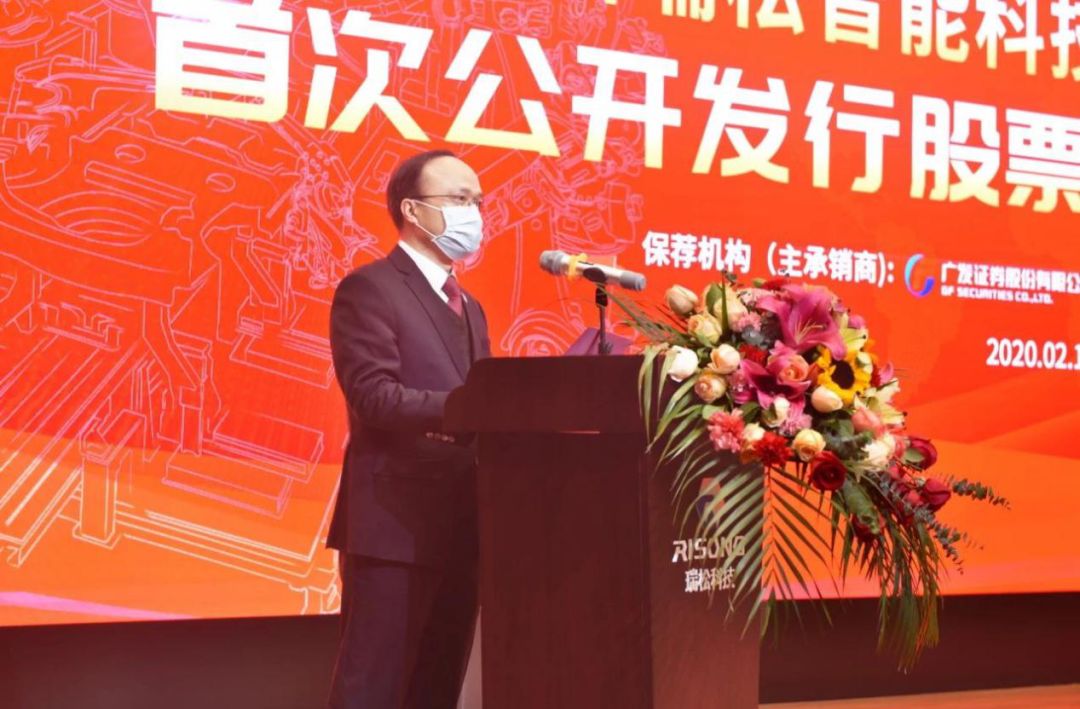 作为受邀嘉宾之一,广州市金融工作局局长邱亿通对这场特殊的上市仪式表示肯定:“这既响应了抗击新冠疫情特殊时期的社会管理要求,又确保我市企业上市交易如期进行。瑞松科技通过积极复产复工抗击疫情,体现了上市公司高度的社会担当和主动作为。”