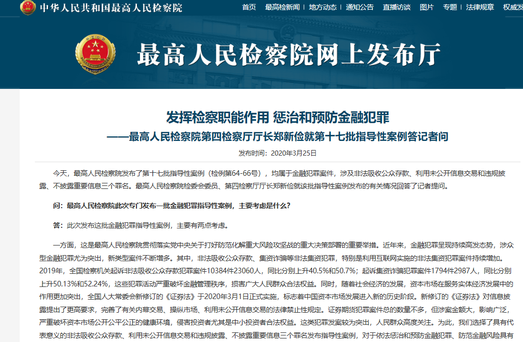 最高检发布最新发布的第十七批指导性案例均属于金融犯罪案件。