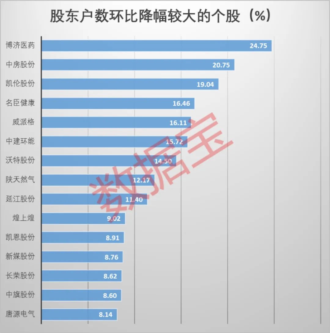 证券时报·数据宝统计显示,剔除今年上市新股,193股的最新股东户数相比上期股东户数环比下降,其中环比降幅超过一成的个股有9只。