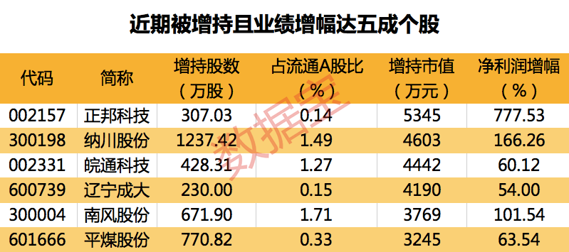 近日41股被增持 9只业绩暴增