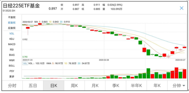 从该只基金与日经225指数的走势图看,从日经225指数2月中旬至今的调整以来,资金对日经ETF是越跌越买,在股指创出新低的同时,净流入资金也创出新高。