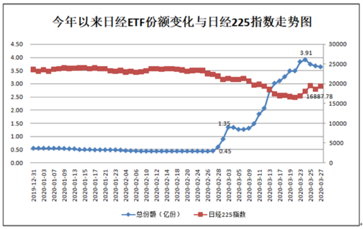 以日经ETF为例,该只基金在去年末基金总份额为5488.72万份,截至3月27日收盘,该只基金年内总份额增至3.64亿份,是去年底总份额的6.63倍。