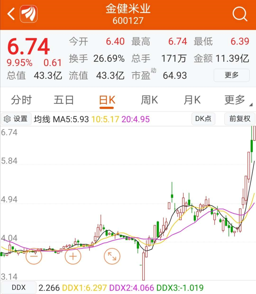 3月30日,A股三大指数清一色走跌,深成指跌幅更是超过2%,在A股一片萧条之际,前期强势的科技股也挡不住市场的回调,不过,大米公司却显著强于大盘。3月30日,金健米业再度强势涨停,这是该公司在短短六日内的第四个涨停板,截止收盘,金健米业在短短一周内股价上涨超过50%。