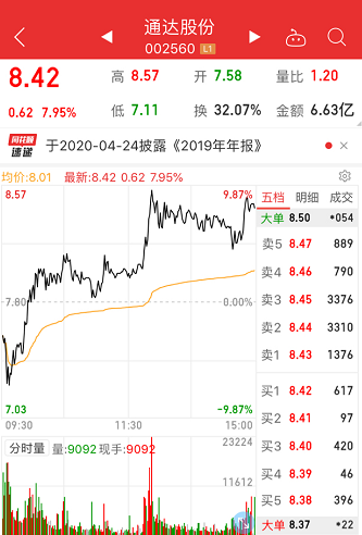 通达股份振幅最大,今日振幅达到18.72%,尾盘收涨7.95%。通达股份是特高压概念股,在3月13日至3月19日期间连续收获5个涨停板。经过几日调整后,今日特高压概念再次反弹,通光线缆、中国西电、英杰电气、日丰股份先后涨停。最先封住涨停板的是次新股英杰电气,该股在11点16分左右就被封上涨停板。日丰股份则是在尾盘阶段被拉升至涨停板。