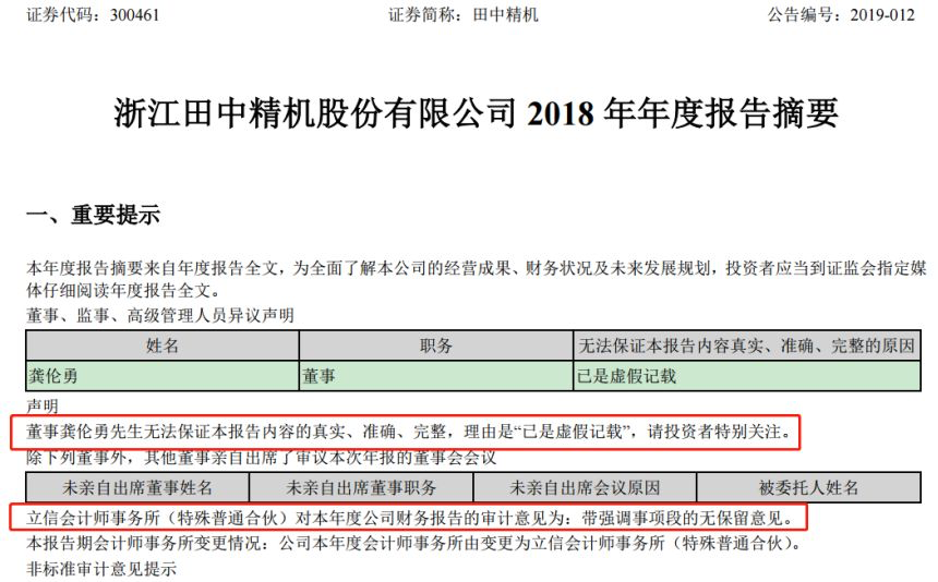 到了2019年4月,龚伦勇凭借董事身份,分别以“已是虚假记载”和“远洋2018年业绩调整到2019年第一季度”为由,表示无法保证田中精机2018年年报和2019年一季报的真实、准确、完整,并在董事会上指责田中精机涉及“业绩造假”、“操纵利润”、“违反章程”。