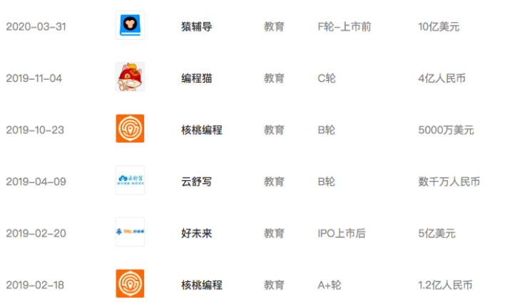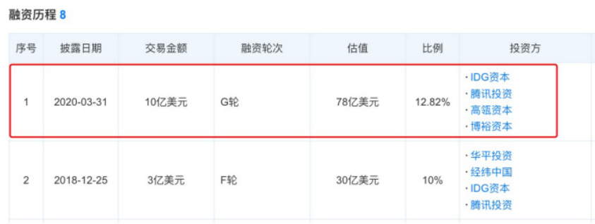 3月31日,猿辅导宣布完成10亿美元(约70亿人民币)的G轮融资,本轮融资是由高瓴资本领投,腾讯、IDG资本等跟投,目前猿辅导估值约78亿美元。