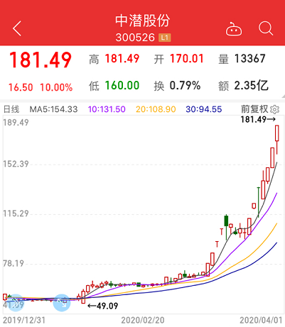 中潜股份再次逆市涨停,成为A股最大牛股之一。