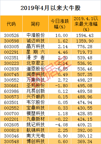 数据宝统计显示,剔除近一年上市的次新股,去年4月1日以来共有37股区间最大涨幅超过3倍。涨幅最大的是中潜股份,其次是诚迈科技,其区间最大涨幅为13.6倍。芯片概念股晶方科技、北京君正、闻泰科技,网红经济概念股星期六,无线耳机概念股漫步者,以及口罩防护概念股道恩股份区间最大涨幅均在5倍以上。