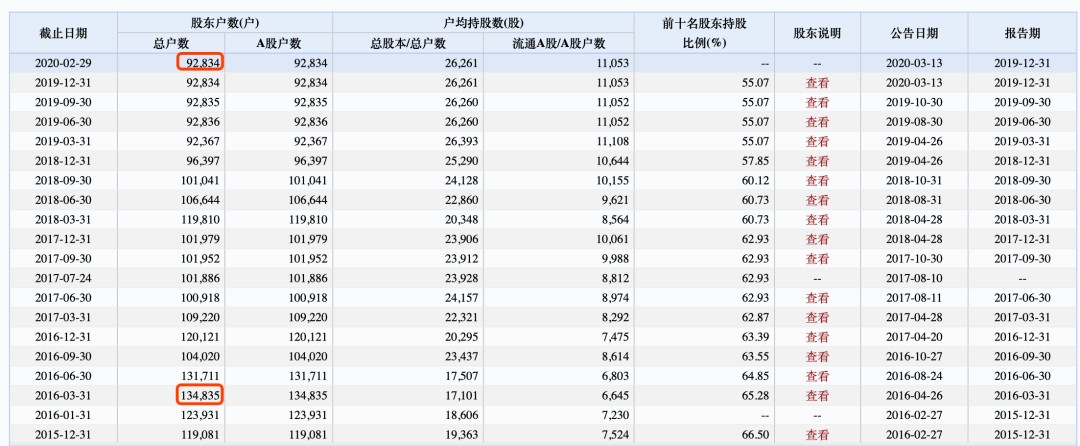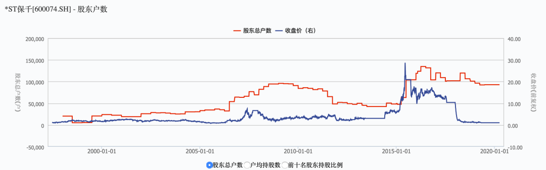 据wind数据显示,若以2015年最高价计算,其股价截至停牌前已累计下跌超过96%,总市值已蒸发超800亿元。而截至2020年2月29日,保千里的股东仍高达92834户,仅少部分股东出逃。