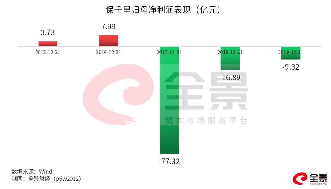 自2016年因涉嫌信披违法违规被证监会立案调查以来,公司经营节节败退。2017年至2019年,*ST保千分别巨亏77.32亿元、16.89亿元、9.32亿元,三年累计亏损103.52亿元。2019年末,归属于上市公司股东的净资产为-59.79亿元,而资产负债率已达1049.53%。