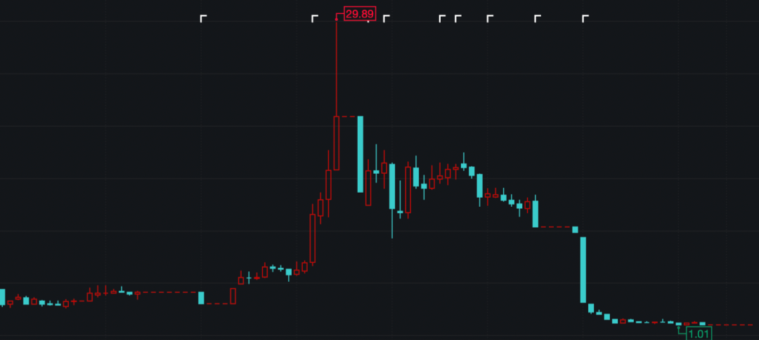 2015年,保千里的股价从年初的5.84元/股最高涨至2015年6月的29.89元/股(未复权),最高涨幅超过400%,对应的最高市值高达896亿元。
