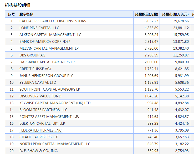 而从机构持股明细来看,截至2019年年底,12家机构持有超过千万股瑞幸咖啡股票,其中既有美国银行、瑞银这样的国际知名投行,也不乏Capital Research Global Investors(全球资本研究投资者基金)、LONE PINE CAPITAL LLC(孤松资本)这样的著名对冲基金。