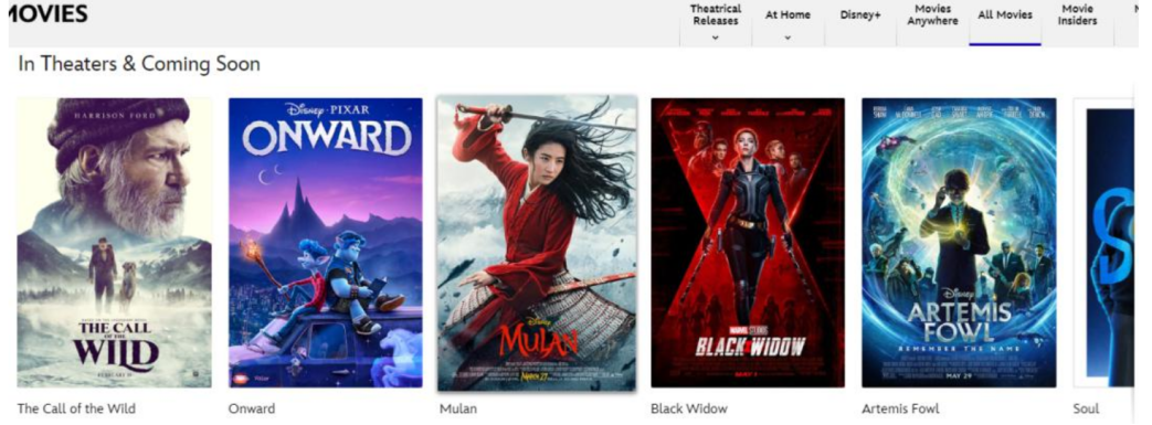 此外,迪士尼精心筹备的电影《花木兰》(Mulan)、《黑寡妇》(Black Widow)、《X战警:变种人》相继取消原定上映计划,档期延后未确定新的上档时机。