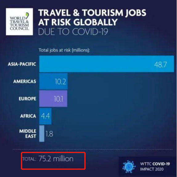 但是在疫情的影响下,曾经提供无数就业可能的行业,成了第一批垮掉的行业,许多人被迫丢掉了饭碗。WTTC世界旅游业理事会预测,新冠疫情可能导致全球7500万名旅游业者失业。
