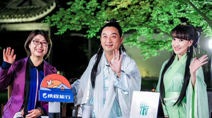 4月2日晚8点,携程董事局主席梁建章和湖州市副市长闵云一起在抖音做了一次直播,推广湖州旅游。因为直播间设在《卧虎藏龙》的拍摄地,梁建章主动要求穿上古装,展示“入乡随俗”的旅游体验。