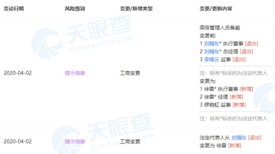 天眼查数据显示,4月2日,京东的运营主体——北京京东世纪贸易有限公司出现工商信息重大变更,刘强东卸任法定代表人、执行董事、总经理,京东零售集团CEO徐雷接任其法定代表人、执行董事和经理职务。同时,李娅云退出监事职务,由缪晓红接任。
