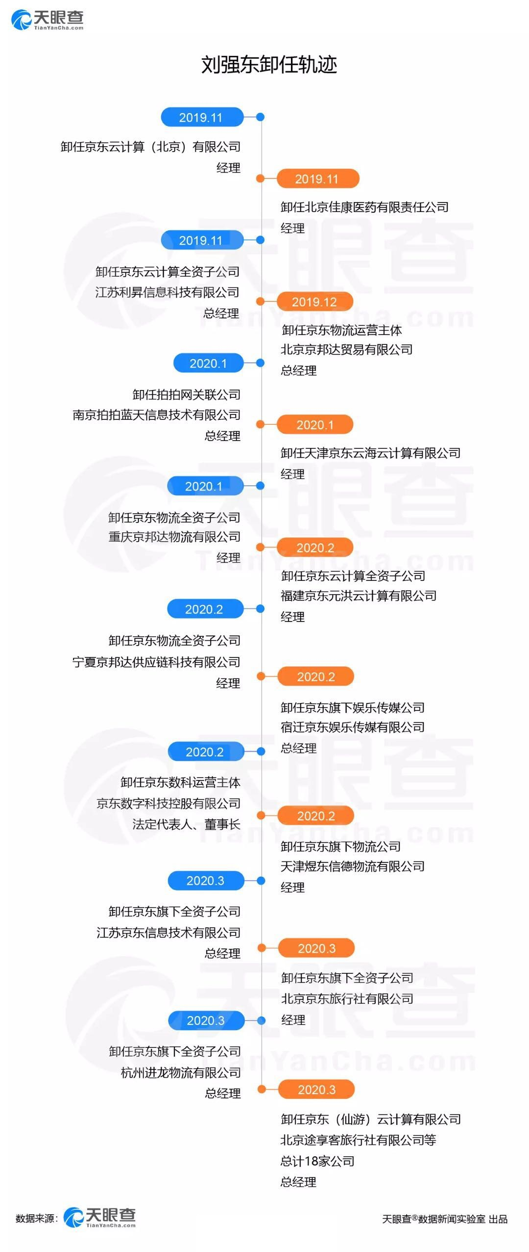 今年3月后更是加快了动作,卸任了宿迁京东齐威企业管理有限公司、宿迁京东金翼企业管理有限公司及江苏大坤聚先信息技术有限公司等25家公司企业的总经理或高管职务。