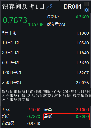 隔夜资金DR001创下0.6%,流动性异常充沛